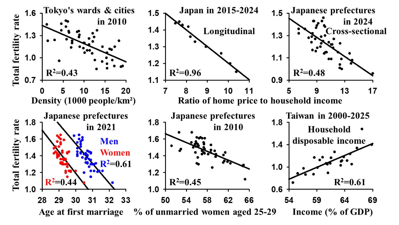 High population density drives up housing costs, and higher price-to-income ratios negatively affect fertility. In recent years, declining fertility in Canada, the U.S., and European countries has been partly driven by soaring housing prices. Since China’s price-to-income ratio far exceeds Japan’s, and since its housing bubble is much larger, boosting fertility would require transforming (demolishing and rebuilding) its cities to lower their population density and housing costs. Doing that, however, could trigger a financial crisis or even an economic collapse.