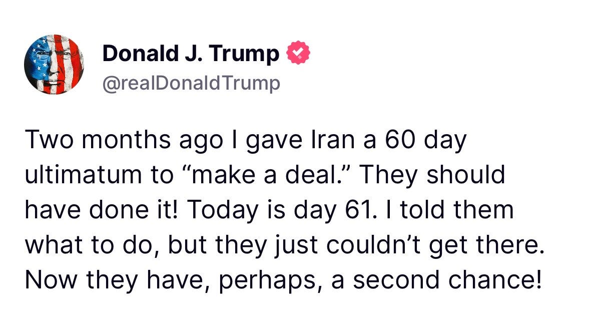 Trump also sees the bigger picture. The Day 61 comment is directed at Vladimir Putin and Xi Jinping, and to a lesser degree at everyone else with whom we’re negotiating a high-stakes trade deal.